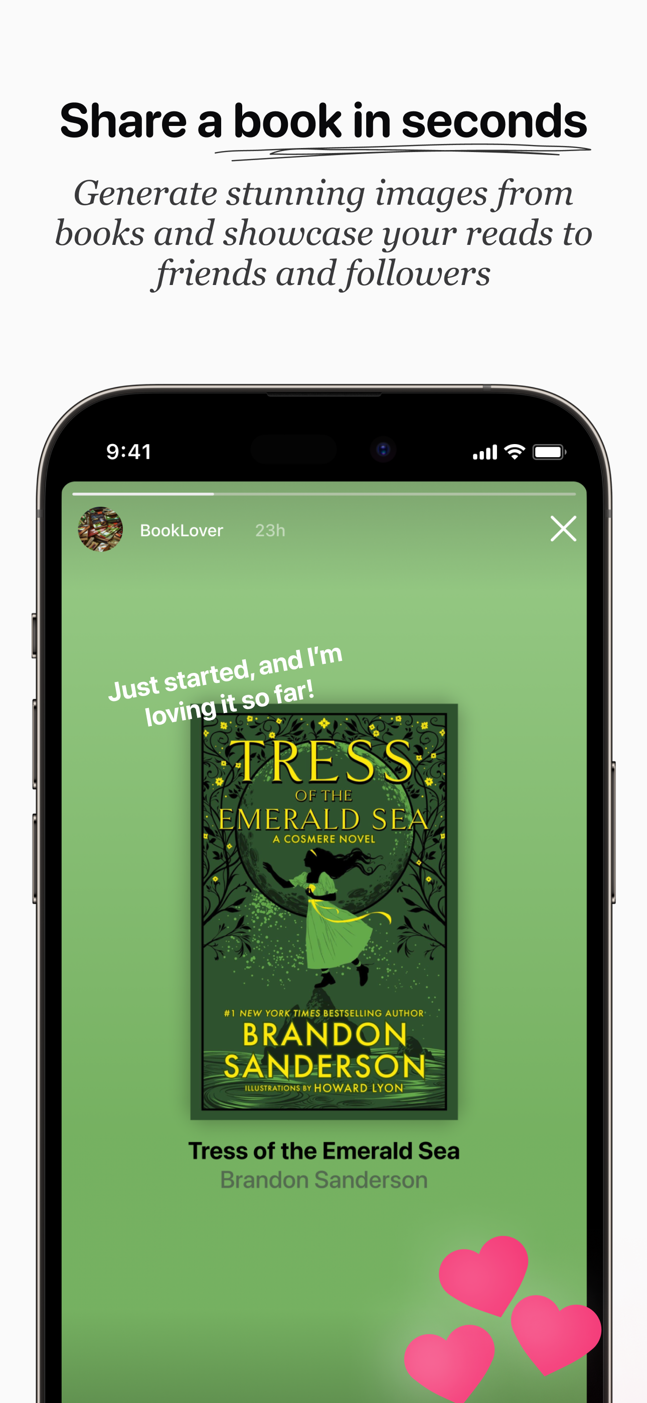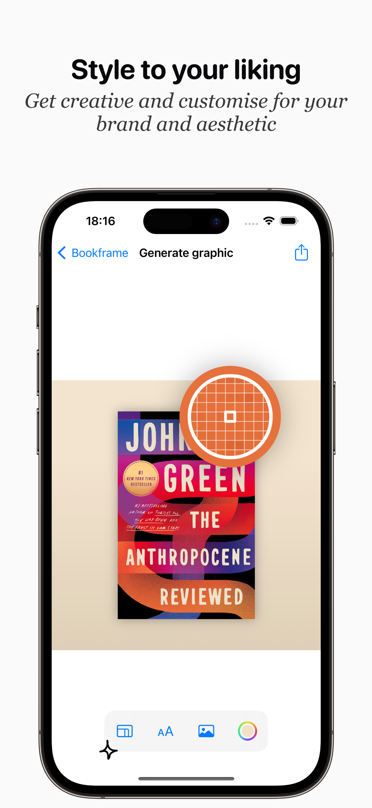 Select a book cover, style it to your liking and share your read with the world. Spend less time wrestling editing software, and more time gushing about books.